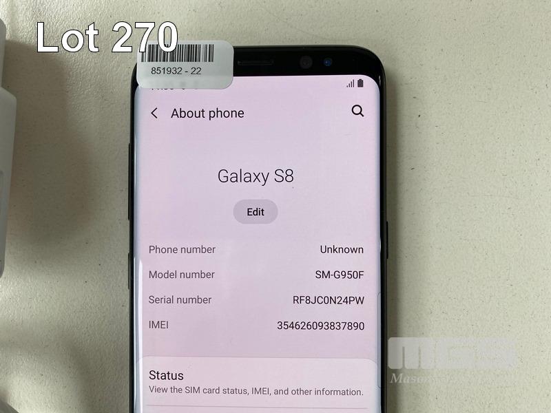 SAMSUNG GALAXY S8 SMARTPHONE, MODEL SM-G950F, 64GB WITH USB-C CHARGER S/N:RF8JC0N24PW