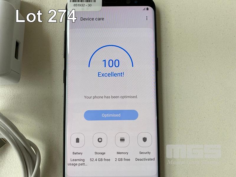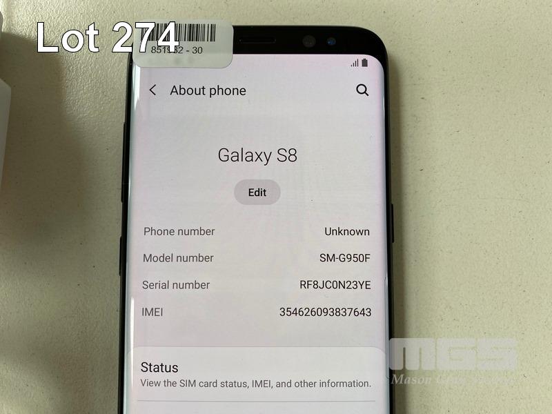 SAMSUNG GALAXY S8 SMARTPHONE, MODEL SM-G950F, 64GB WITH USB-C CHARGER S/N:RF8JC0N23YE