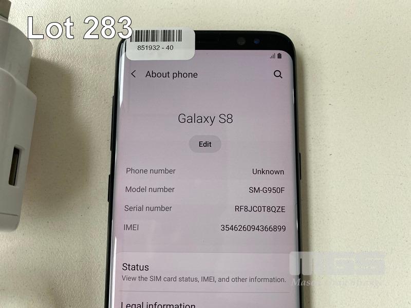 SAMSUNG GALAXY S8 SMARTPHONE, MODEL SM-G950F, 64GB WITH USB-C CHARGER S/N:RF8JC0T8QZE