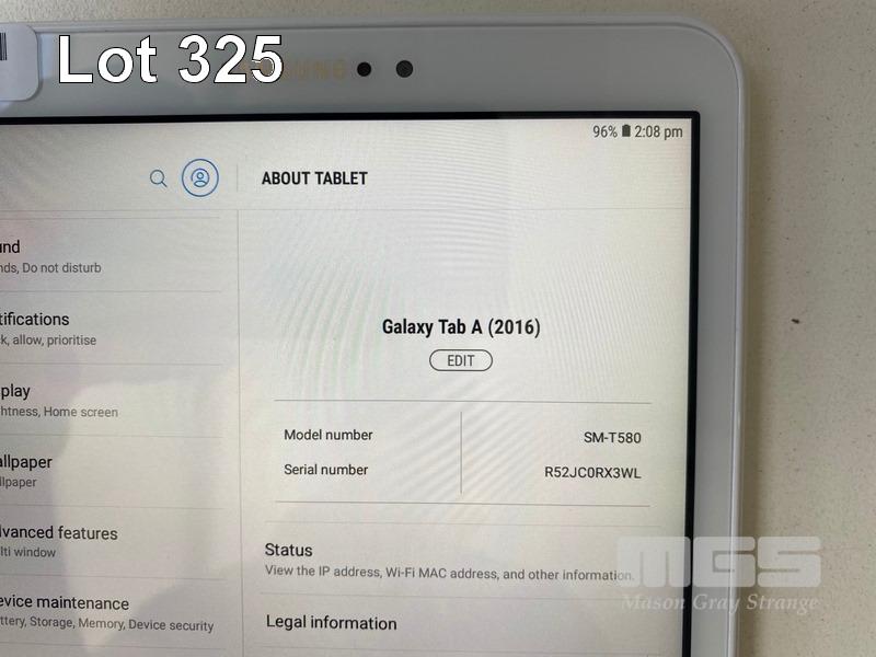 TABLET PC, SAMSUNG GALAXY TAB A, MODEL SM-T580, 16GB, Wi-Fi, 10.1" SCREEN (NO CABLE, NO CHARGER) S/N:R52JC0RX3WL