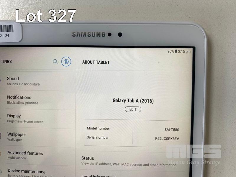 TABLET PC, SAMSUNG GALAXY TAB A, MODEL SM-T580, 16GB, Wi-Fi, 10.1" SCREEN (NO CABLE, NO CHARGER) S/N:R52JC0RX3FV