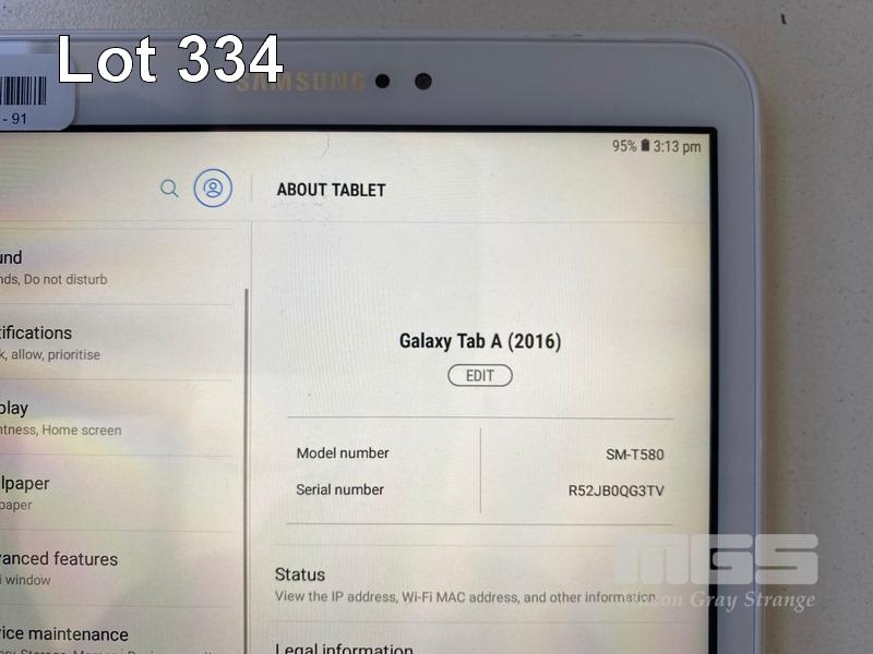 TABLET PC, SAMSUNG GALAXY TAB A, MODEL SM-T580, 16GB, Wi-Fi, 10.1" SCREEN (NO CABLE, NO CHARGER) S/N:R52JB0QG3TV