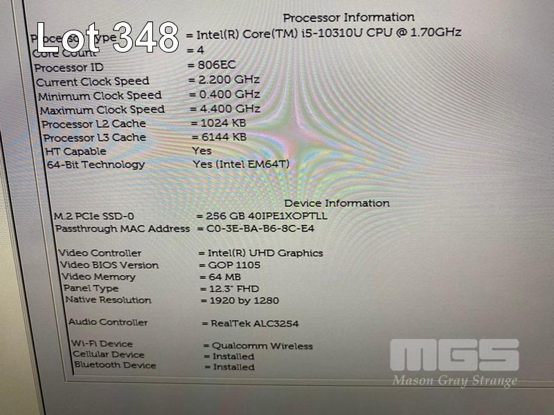 TABLET PC, DELL LATITUDE 7210 2-IN-1, CORE i5 10310U (10TH GEN) @ 1.7GHz, 8GB DDR3 RAM, 256GB NVMe M.2 SSD, 12.3" TOUCHSCREEN (1920x1280), INTEL UHD GRAPHICS, Wi-Fi, CELLULAR, BLUETOOTH, WINDOWS 10 PRO INSTALLED, KEYBOARD & USB-C POWER SUPPLY S/N:51JBX33