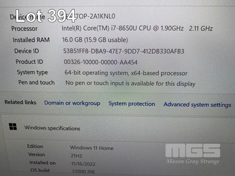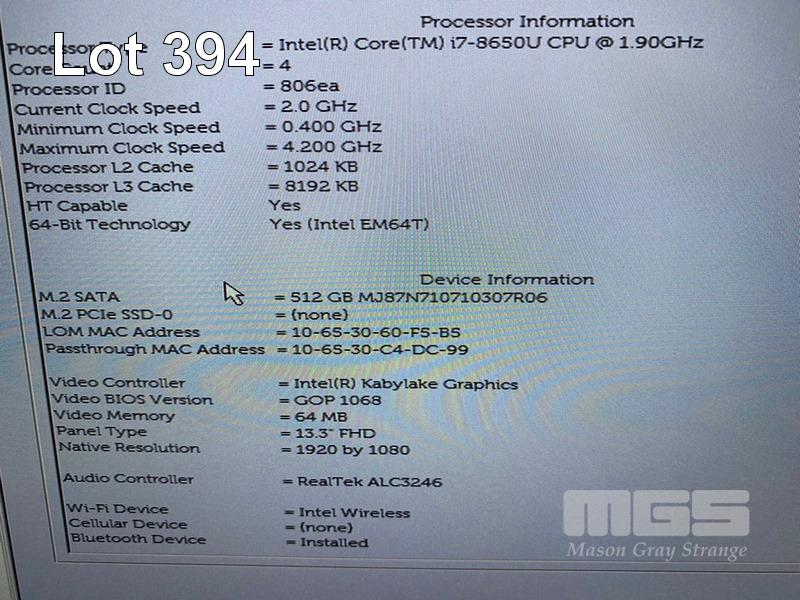 LAPTOP, DELL LATITUDE 7390, CORE i7 8650U (8TH GEN) @ 1.9GHz, 16GB DDR4 RAM, 512GB M.2 SSD, 13.3" WIDESCREEN (1920x1080), INTEL KABYLAKE GRAPHICS, Wi-Fi, BLUETOOTH, WINDOWS 11 HOME INSTALLED & POWER SUPPLY S/N:7HCSQQ2