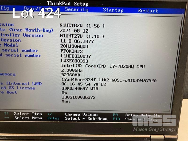 LAPTOP, LENOVO THINKPAD P51 MOBILE WORKSTATION, TYPE 20HJ, CORE i7 7820HQ (7TH GEN) @ 2.9GHz, 32GB DDR4 RAM, 512GB NVMe M.2 SSD, 15.6" WIDESCREEN (1920x1080), 4GB NVIDIA QUADRO M2200 VIDEO, Wi-Fi, BLUETOOTH, WINDOWS 10 PRO INSTALLED, DOCKING STATION & POWER SUPPLY (230W) S/N:PF0X3AFS