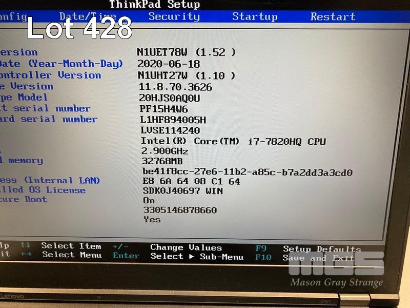 LAPTOP, LENOVO THINKPAD P51 MOBILE WORKSTATION, TYPE 20HJ, CORE i7 7820HQ (7TH GEN) @ 2.9GHz, 32GB DDR4 RAM, 512GB NVMe M.2 SSD, 15.6" WIDESCREEN (1920x1080), 4GB NVIDIA QUADRO M2200 VIDEO, Wi-Fi, BLUETOOTH, WINDOWS 10 PRO INSTALLED, DOCKING STATION & POWER SUPPLY (230W) S/N:PF15H4W6