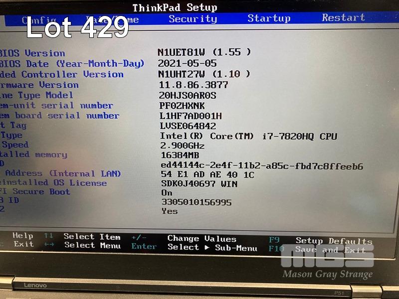 LAPTOP, LENOVO THINKPAD P51 MOBILE WORKSTATION, TYPE 20HJ, CORE i7 7820HQ (7TH GEN) @ 2.9GHz, 16GB DDR4 RAM, 2 x 512GB NVMe M.2 SSD, 15.6" WIDESCREEN (1920x1080), 4GB NVIDIA QUADRO M2200 VIDEO, Wi-Fi, BLUETOOTH, WINDOWS 10 PRO INSTALLED & POWER SUPPLY S/N:PF0ZHXNK