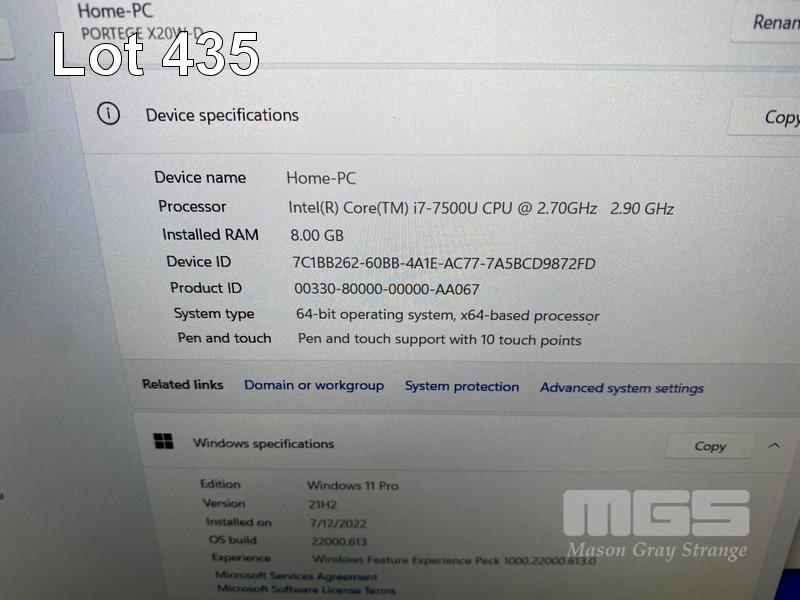 LAPTOP, TOSHIBA PORTEGE X20W-D, CORE i7 7500U (7TH GEN) @ 2.7GHz, 8GB DDR3 RAM, 256GB M.2 SSD, 12.5" TOUCHSCREEN (1920x1080), INTEL HD GRAPHICS 620, Wi-Fi- BLUETOOTH, WINDOWS 11 PRO INSTALLED & (LENOVO) USB-C POWER SUPPLY S/N:ZG111288H