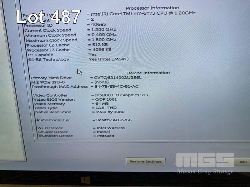 TABLET PC, DELL LATITUDE 7275, CORE m7-6Y75 (6TH GEN) @ 1.2GHz, 8GB DDR3 RAM, 256GB M.2 SSD, 12.5" TOUCHSCREEN (1920x1080), INTEL HD GRAPHICS 515, Wi-Fi, BLUETOOTH, WINDOWS 10 HOME INSTALLED, KEYBOARD DOCK (NO USB-C POWER SUPPLY) S/N:2418HC2