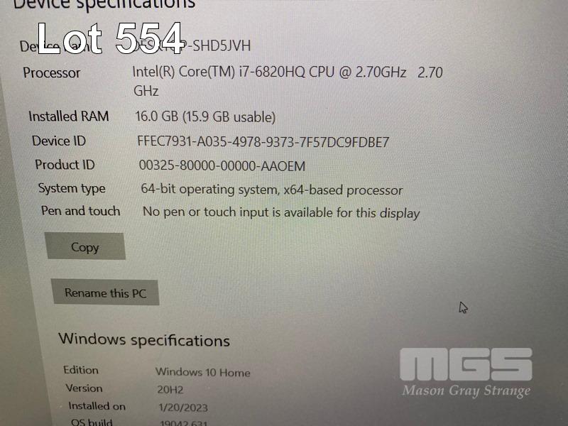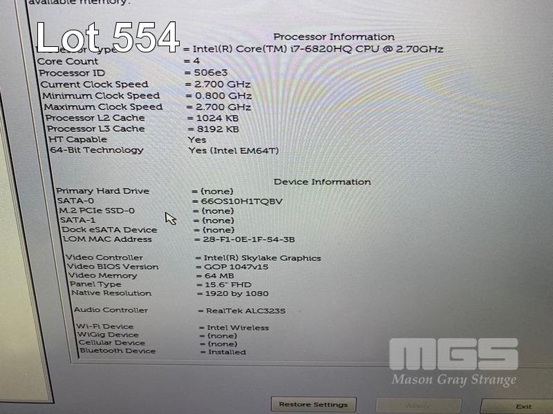 LAPTOP, DELL LATITUDE E5570, CORE i7 6820HQ (6TH GEN) @ 2.7GHz, 16GB DDR3 RAM, 256GB M.2 SSD, 15.6" WIDESCREEN (1920x1080), INTEL SKYLAKE GRAPHICS, Wi-Fi, BLUETOOTH, WINDOWS 10 HOME INSTALLED, DOCKING STATION & POWER SUPPLY S/N:8XMZKC2