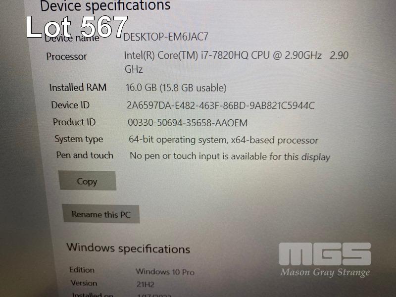 LAPTOP, LENOVO THINKPAD P51 MOBILE WORKSTATION, TYPE 20HJ, CORE i7 7820HQ (7TH GEN) @ 2.9GHz, 16GB DDR4 RAM, 512GB NVMe M.2 SSD, 15.6" WIDESCREEN (1920x1080), 4GB NVIDIA QUADRO M2200 VIDEO, Wi-Fi, BLUETOOTH, WINDOWS 10 PRO INSTALLED & POWER SUPPLY S/N:PF0UGL9A