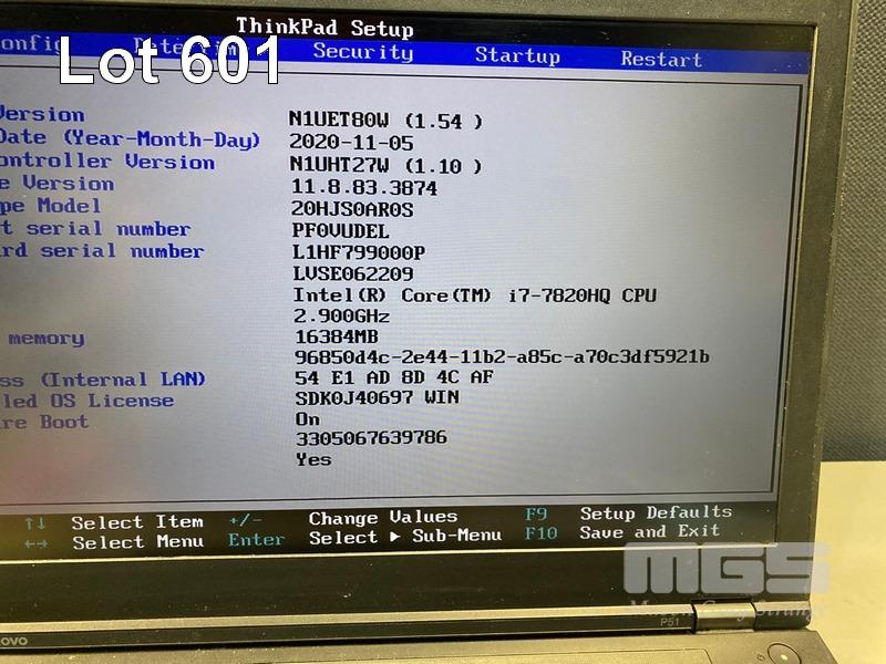 LAPTOP, LENOVO THINKPAD P51 MOBILE WORKSTATION, TYPE 20HJ, CORE i7 7820HQ (7TH GEN) @ 2.9GHz, 16GB DDR4 RAM, 512GB NVMe M.2 SSD, 15.6" WIDESCREEN (1920x1080), 4GB NVIDIA QUADRO M2200 VIDEO, Wi-Fi, BLUETOOTH, WINDOWS 10 PRO INSTALLED & POWER SUPPLY (NOTE: MARKS ON SCREEN) S/N:PF0VUDEL