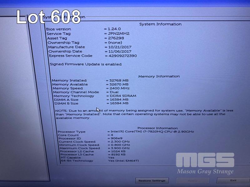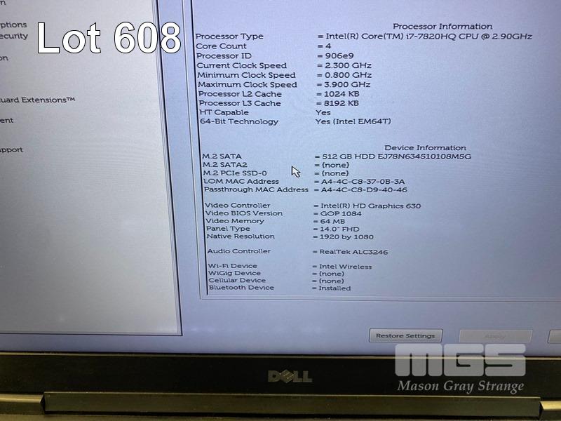 LAPTOP, DELL LATITUDE 5480, CORE i7 7820HQ (7TH GEN) @ 2.9GHz, 32GB DDR4 RAM, 512GB M.2 SSD, 14" WIDESCREEN (1920x1080), 2GB NVIDIA GEFORCE 930MX VIDEO, INTEL HD GRAPHICS 630, Wi-Fi, BLUETOOTH, WINDOWS 10 PRO INSTALLED & POWER SUPPLY (NOTE: MARKS ON SCREEN, WHITE SPOT SCREEN BLEMISHES) S/N:JPN2MH2