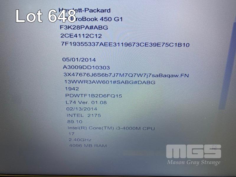 LAPTOP, HP PROBOOK 450 G1 (F3K28PA), CORE i3 4000M (4TH GEN) @ 2.4GHz, 4GB DDR3 RAM, 500GB SATA HDD, DVD-RW, 15.6" WIDESCREEN (1366x768), INTEL HD VIDEO, Wi-Fi, BLUETOOTH, WINDOWS 10 PRO INSTALLED & POWER SUPPLY S/N:2CE4112C12