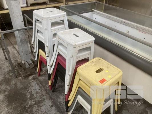 15 x LOWLINE STOOLS, METAL FRAME, ASSORTED COLOURS