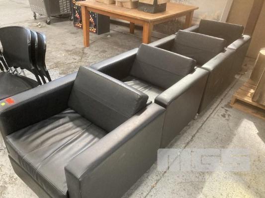 4 x RECEPTION CHAIRS, BLACK VINYL