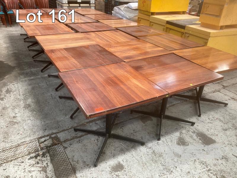 19 x RESTAURANT DINING TABLES, 80 x 80cm STAINED TIMBER TOP