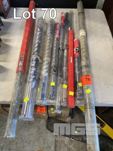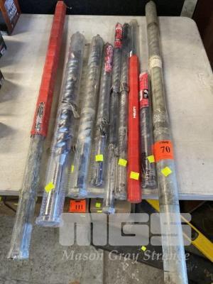 9 x ROTARY HAMMER DRILL BITS, ASSORTED LENGTHS UP TO 32 x 900mm, 45 X 500mm, ETC IN HOLDERS