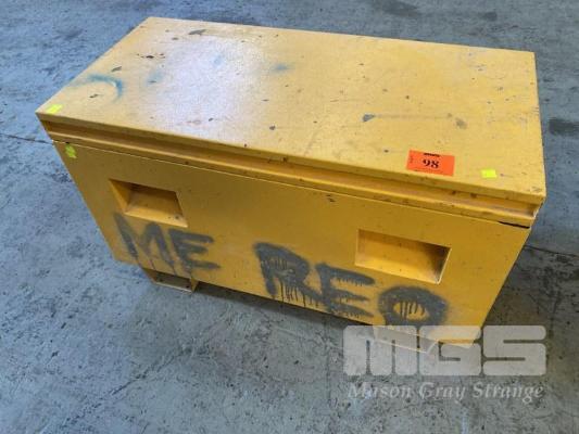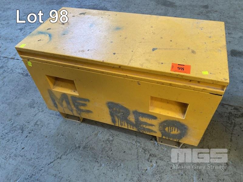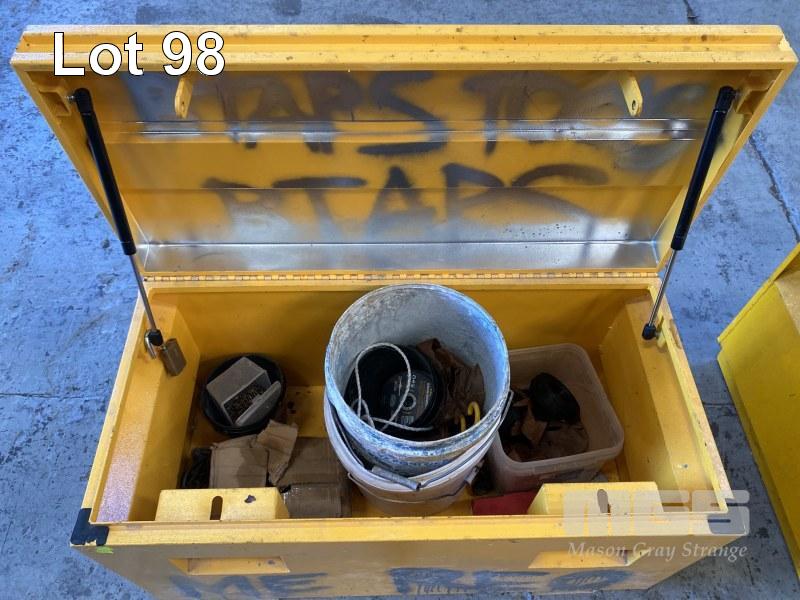 STEEL SITE TOOLBOX, 920 x 440 x 560mm (H), YELLOW & CONTENTS TIE WIRE, FASTENERS, ETC