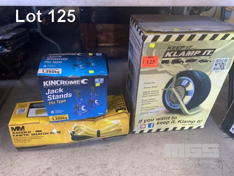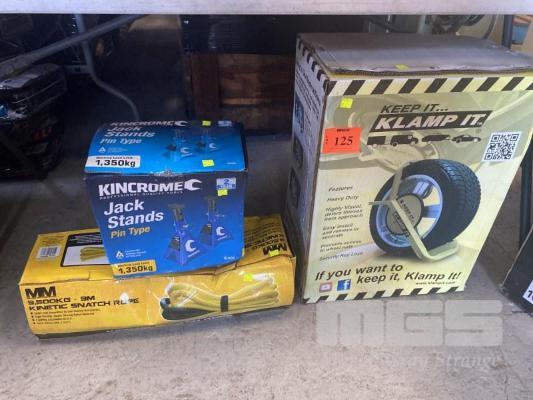 CLAMP IT WHEEL CLAMP, KINGCROME, JACK STANDS & MEAN MOTHER KINETIC SNATCH ROPE, 9m