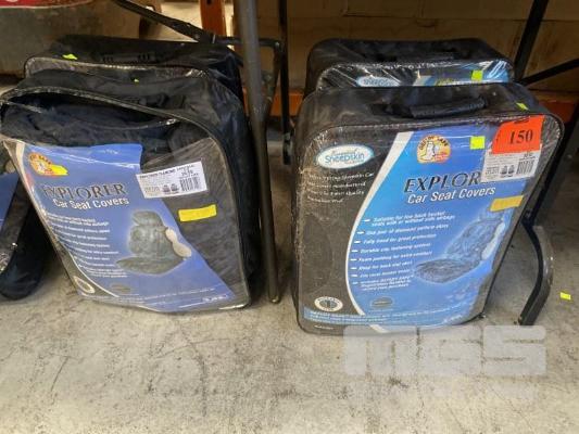 2 x SHEEPSKIN CAR SEAT COVER SETS, UNIVERSAL,EXPLORER DIAMOND SIZE: 30/50, BLACK & 2 x SHEEPSKIN CAR SEAT COVER SETS, UNIVERSAL,EXPLORER DIAMOND SIZE: 30/50, CHARCOAL (NOTE: INSURANCE CLAIM, WATER DAMAGED STOCK)