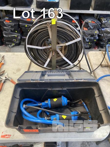2 x PNEUMATIC PRUNING CUTTERS IN TOOL BOX WITH AIR HOSE & REEL