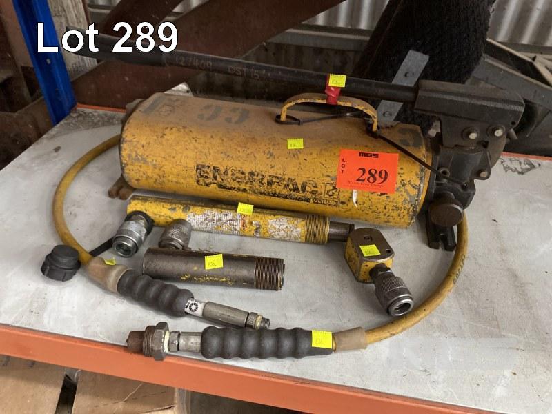 ENERPAC ULTIMA HYDRAULIC HAND PUMP WITH HOSE & 3 x HYDRAULIC RAMS
