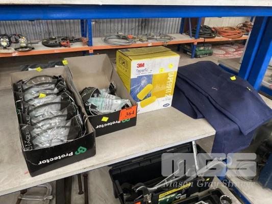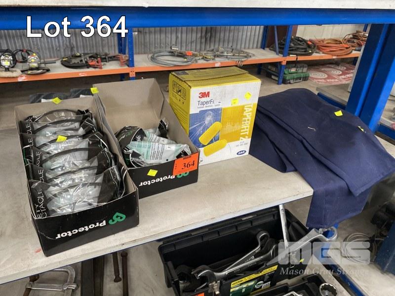 20 x PAIRS SAFETY GLASSES, PROTECTOR, 1 x BOX EAR PLUGS & HARD YAKKA OVERALLS, 74L