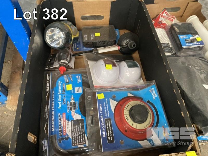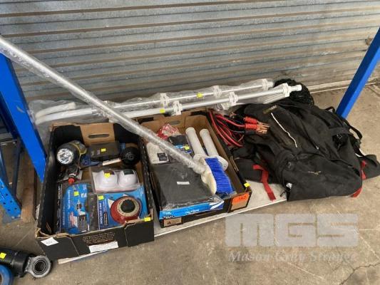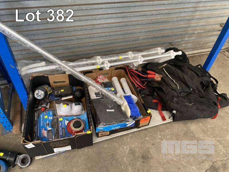 BOATING EQUIPMENT INC 2 x LADDERS, 900 & 1200mm , ROD HOLDERS, BATTERY SWITCH, LIGHTS, FUEL LINE ASSEMBLY, BRUSH, CLEAT, JUMPER LEADS & BACKPACK, 1 x SHELF