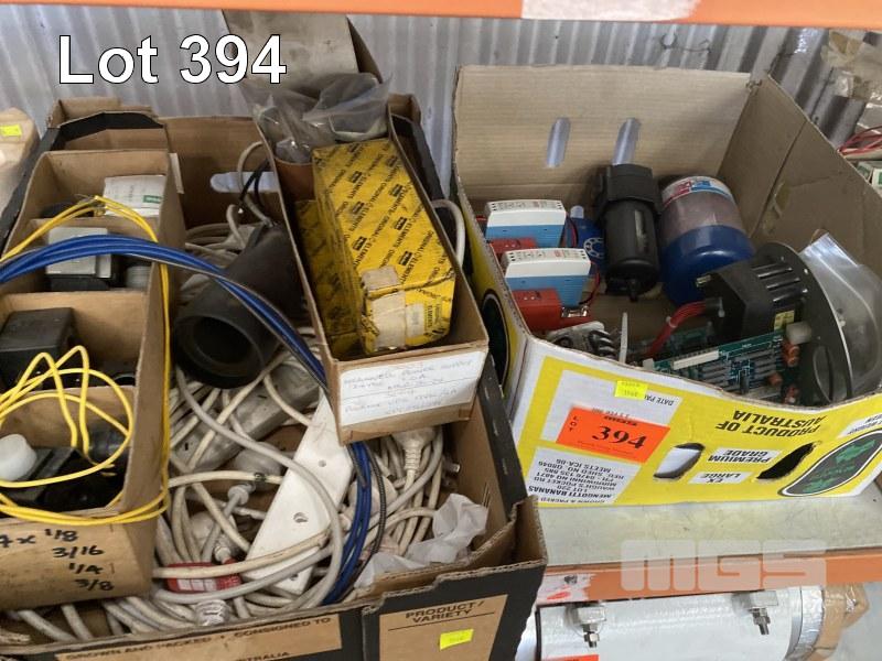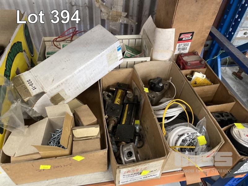 ASSORTED INDUSTRIAL COMPONENTS INC AIR RAMS, MANIFOLDS, GAUGES, CONTACTORS, SOLENOIDS, SWITCHES, ETC, 1 x SHELF