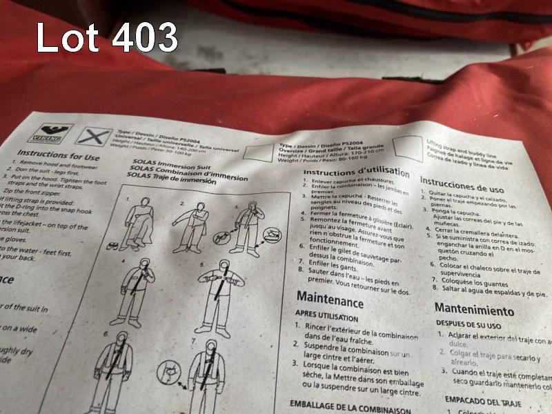2 x VIKING SOLAS IMMERSION SUITS MOD: PS2014 DOM: 2016 SIZE: UNIVERSAL HEIGHT: 140-200cm WEIGHT: 50-100kg HIGH VISIBILITY YELLOW REFLECTIVE TAPE FOR HIGH VISIBILITY IN THE DARK THERMAL PROTECTION IN COLD WINTER IN CARRY BAG
