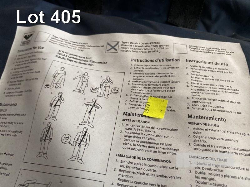 2 x VIKING SOLAS IMMERSION SUITS MOD: PS2014 DOM: 2016 SIZE: UNIVERSAL HEIGHT: 140-200cm WEIGHT: 50-100kg HIGH VISIBILITY YELLOW REFLECTIVE TAPE FOR HIGH VISIBILITY IN THE DARK THERMAL PROTECTION IN COLD WINTER IN CARRY BAG