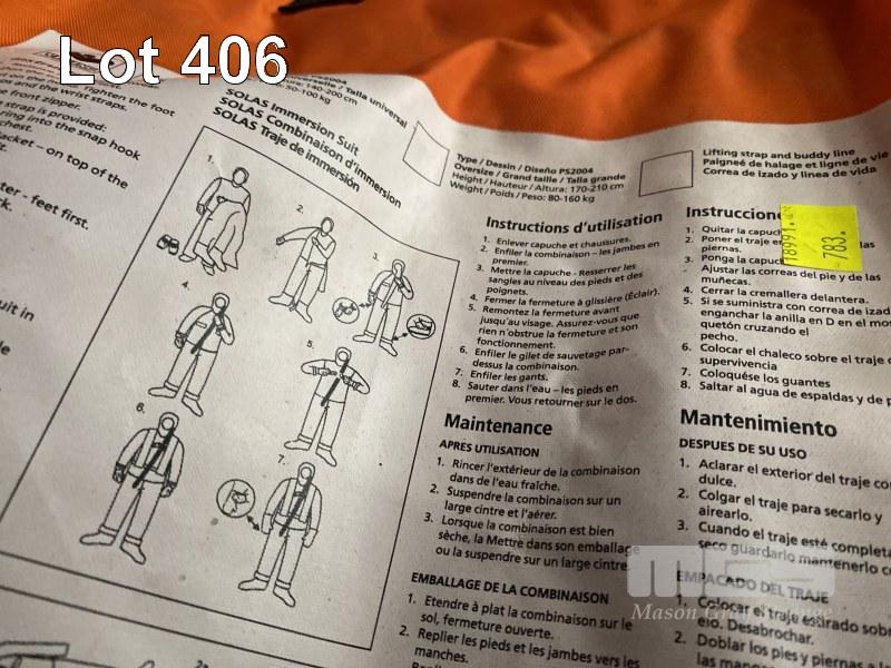 2 x VIKING SOLAS IMMERSION SUITS MOD: PS2004 DOM: 2016 SIZE: UNIVERSAL HEIGHT: 170-210cm WEIGHT: 80-160kg HIGH VISIBILITY YELLOW REFLECTIVE TAPE FOR HIGH VISIBILITY IN THE DARK THERMAL PROTECTION IN COLD WINTER IN CARRY BAG
