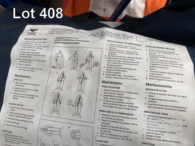 3 x VIKING SOLAS IMMERSION SUITS MOD: PS2004 DOM: 2016 SIZE: UNIVERSAL HEIGHT: 170-210cm WEIGHT: 80-160kg HIGH VISIBILITY YELLOW REFLECTIVE TAPE FOR HIGH VISIBILITY IN THE DARK THERMAL PROTECTION IN COLD WINTER IN CARRY BAG