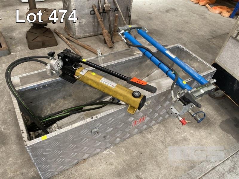 HYDRAULIC POWER PACK UNIT, SPECIALISED FORCE MOD: SP-392 SUIT LINE PULLING APPLICATION MANUAL 10,000 PSI (700 BAR) WITH GAUGE & MANIFOLD HOSES, TWIN HYDRAULIC RAM ASSEMBLY, 850mm (L) WITH LEVER SWITCH MANIFOLD & ALLOY TOOL BOX 1230 x 370 x 400mm(H)