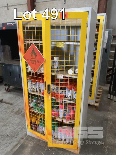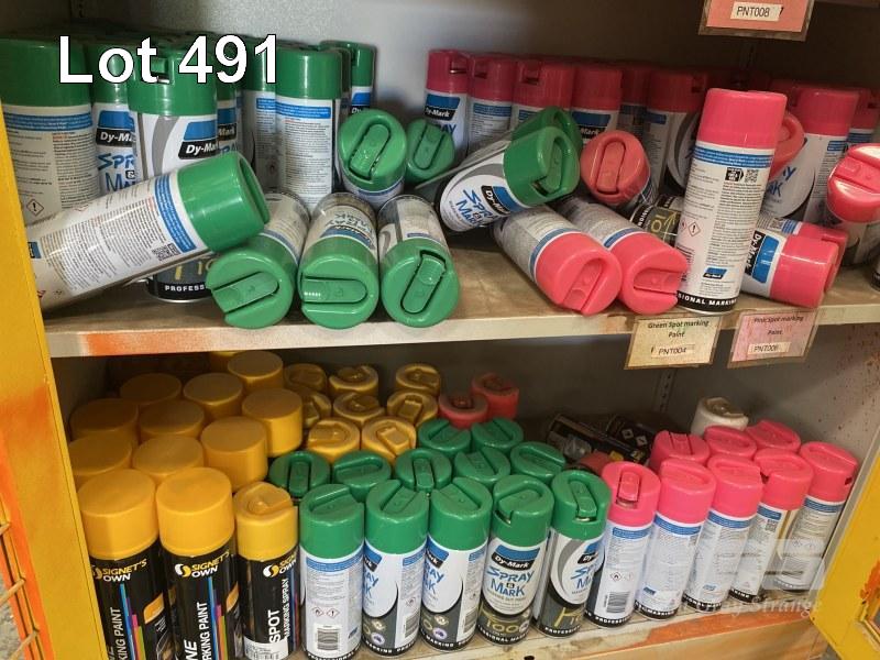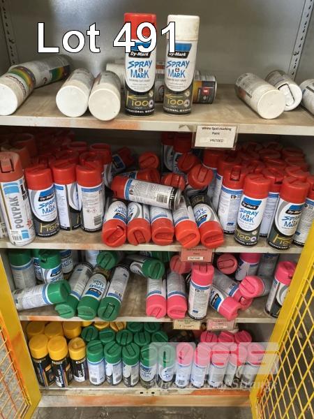 LARGE QUANTITY MARKING PAINT, 350gm, ASSORTED COLOURS & 2 DOOR LOCKABLE CABINET