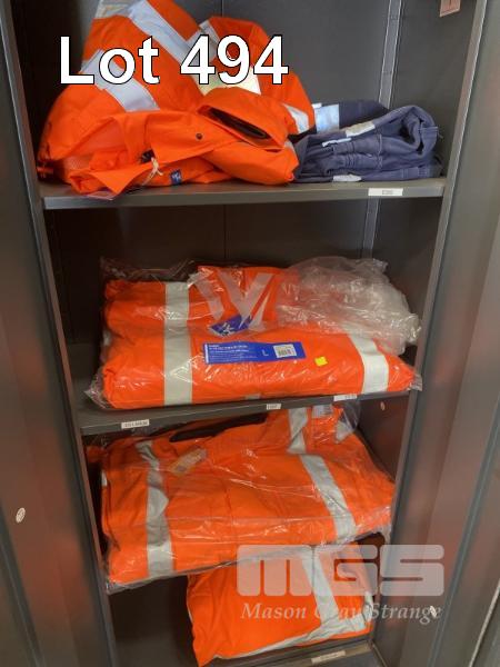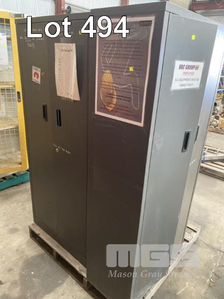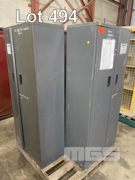 3 x 2 DOOR STORAGE CABINETS, 170 x 76cm, GREY STEEL & HIGH VIS WORK CLOTHING & JACKETS