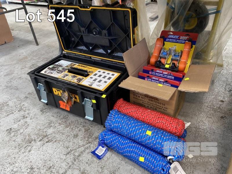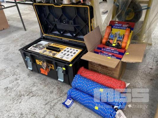 DEWALT TOUGH SYSTEMS, TOOL BOX, DS300 WITH 5 x POLY ROPE, 9mm, 30m ROLLS & 5 x RATCHET STRAP PACKS, 650kg & 272kg (NEW)
