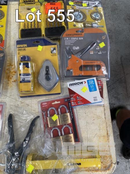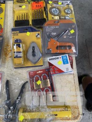 MASONRY DRILL BIT SET, WIRE BRUSH SET, STAPLE GUN & STAPLES, STRAIGHT LINE, LOCKWOOD PADLOCKS & CAULKING GUN, (NEW)