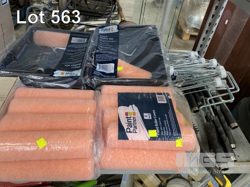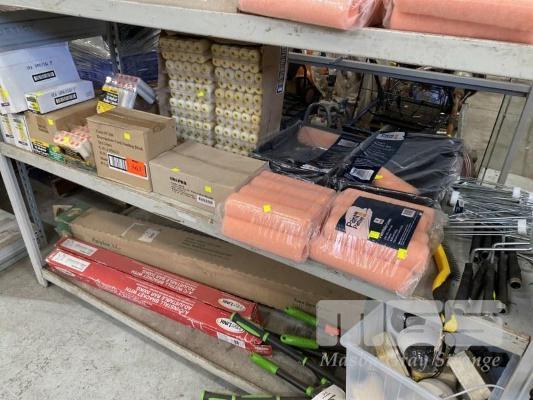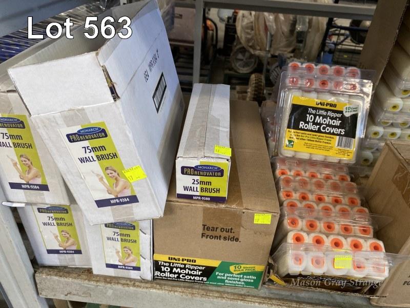 PAINTING SUPPLIES INCLUDING 75mm WALL BRUSHES, 4 xBOXES OF 6 & 1 x BOX 12, 6 x 25mm BRUSHES, 24 x CORK SANDING BLOCKS, 8 x PAINT ROLLERS, 230mm, 4 x PAINT TRAY & ROLLER SETS, 16 x ROLLER COVERS, 230mm, MINI ROLLER COVERS, MOHAIR 8 x PACKS OF 10 & HEAVY DUTY FOAM, 12 x PACKS OF 10, (ALL NEW)
