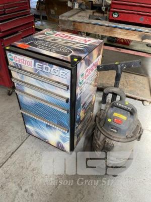 BAR FRIDGE, CASTROL EDGE PRO-MO & OZITO WET & DRY VAC, 240V