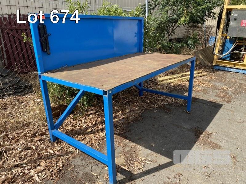 STEEL WORK BENCH, 2000 x 1000 x 950mm (H), PLATE TOP WITH BACK STOP