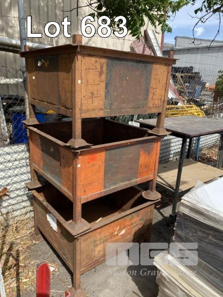 3 x STACKABLE STEEL STILLAGES, 870 x 870 x 560mm (H)
