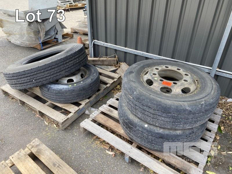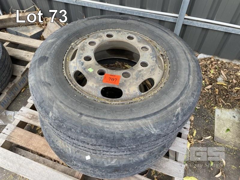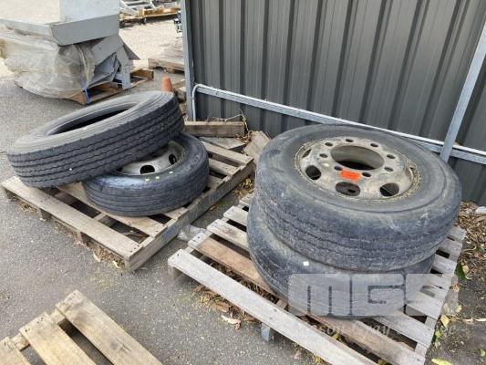 3 x TRUCK TYRES & RIMS, 215/75 & 265/70
