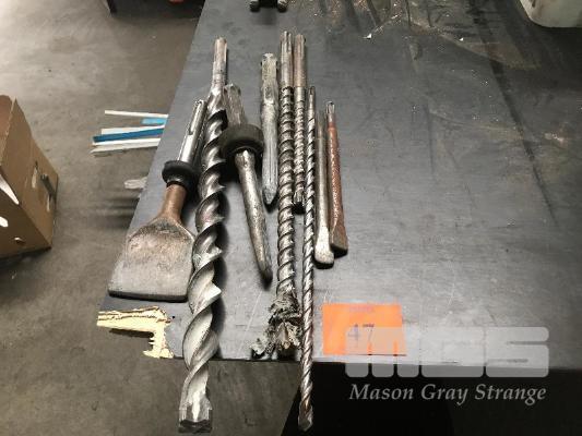 ASSORTED HAMMER DRILL ATTACHMENTS, MASONRY DRILLS, CHIPPING SPADE, SPIKES, ETC