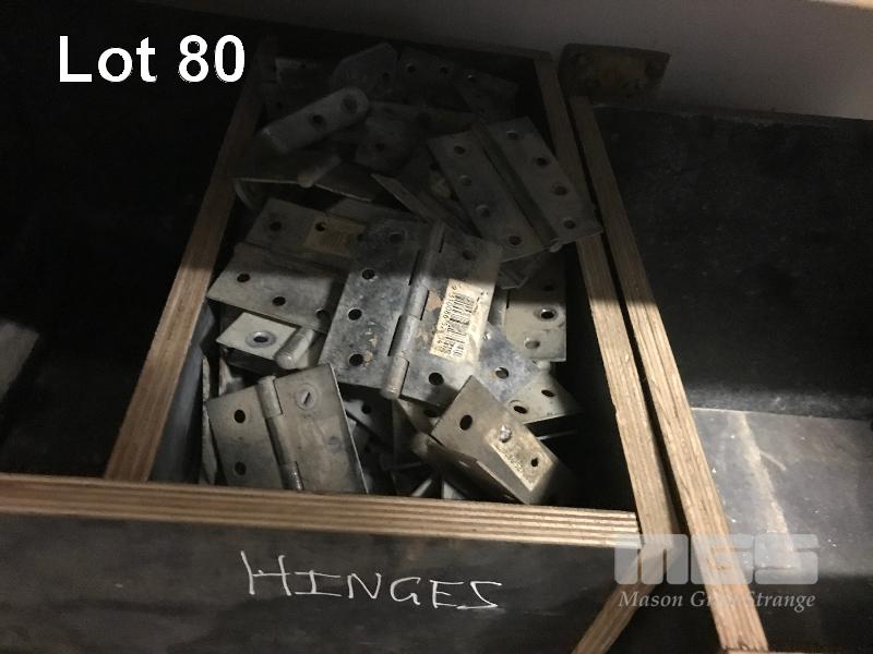ASSORTED SPACERS/PACKES, ASSORTED STEEL FASTENERS, BRACKETS & LARGE QUANTITY HINGES