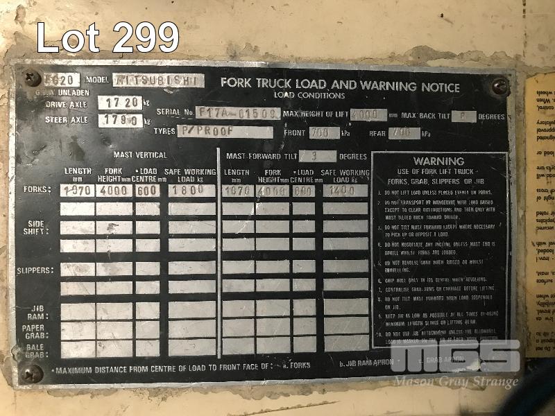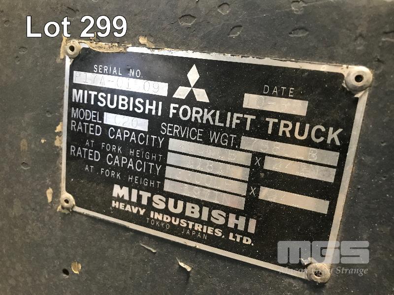 2010 MITSUBISHI FG20 1.8 TONNE FORKLIFT VIN: F17A-01509 LPG, (NO PAPERS, NO OWNER'S MANUAL, NO SERVICE BOOKS)