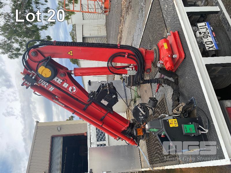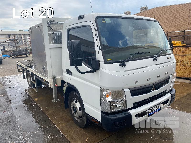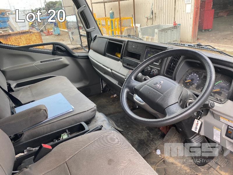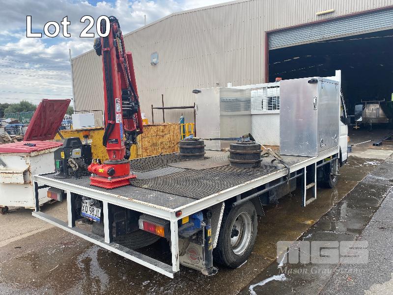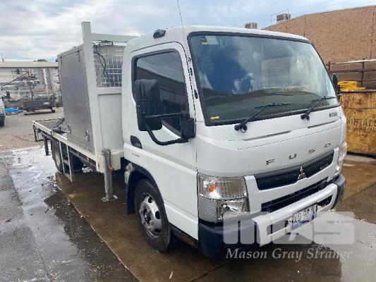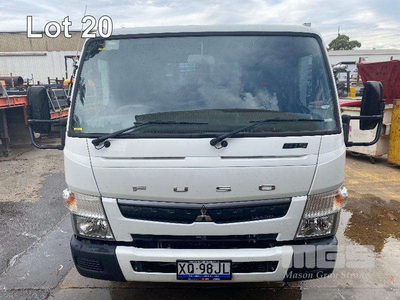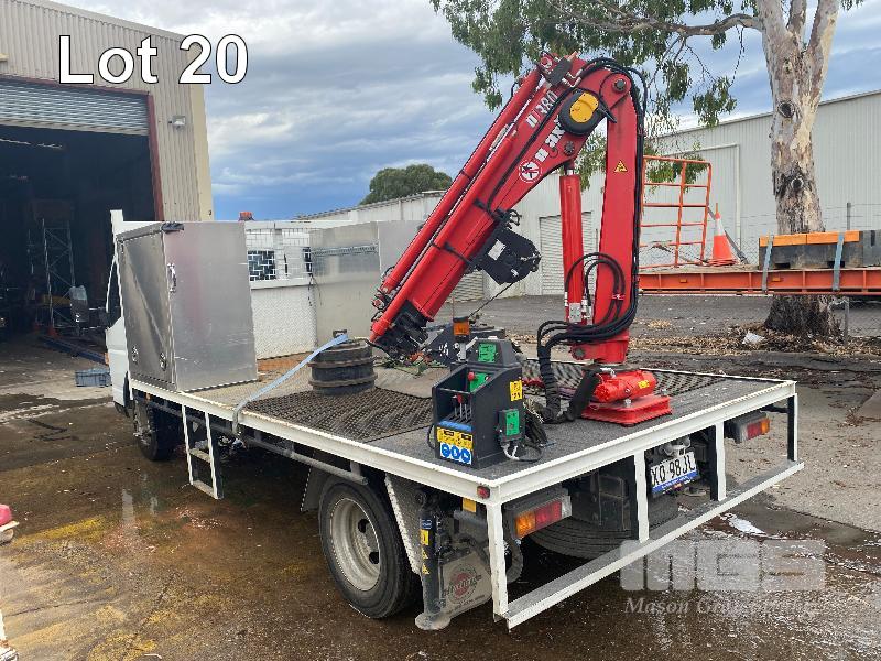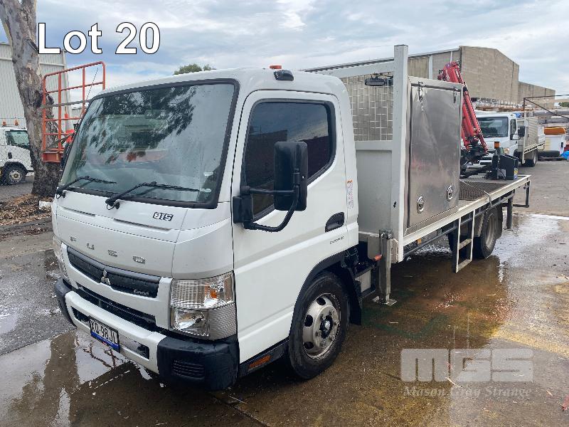 2019 MITSUBISHI FUSO TF CANTER 815 DUONIC 4 x 2 TRAY TOP TRUCK REG: XQ98JL VIN: JLFFEB71G0KJ30407 ODO: 22,965 kms SHOWING GVM: 7,500kg AUTO, FITTED WITH MAXILIFT CRANE DOM: 2016 MOD: 380-4H LIFT 2,088kg