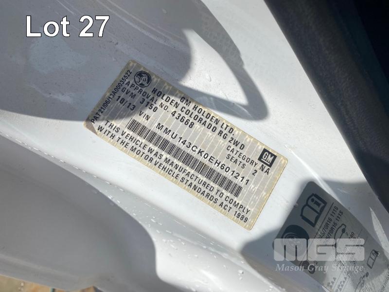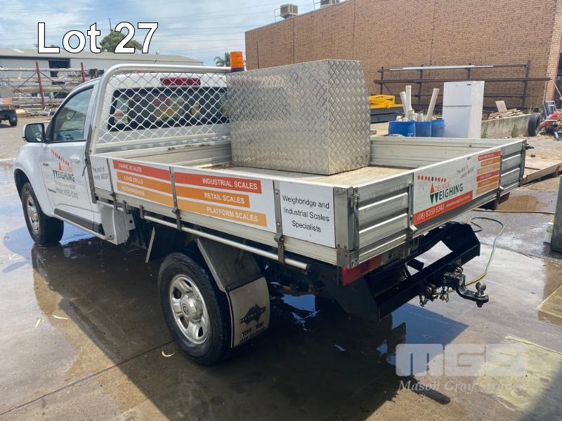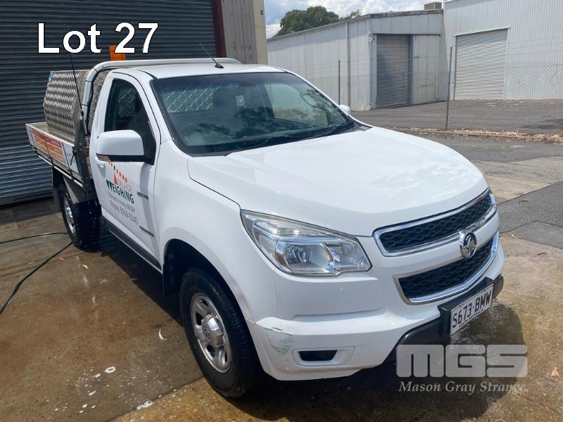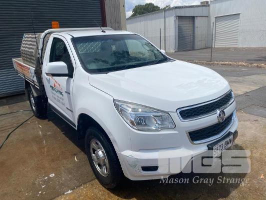 2013 HOLDEN COLORADO SINGLE CAB TRAYTOP 4x2 REG: S673 BMW VIN: MMU143CK0EH601211 ODO: 327,443kms SHOWING AUTOMATIC TRANSMISSION, DIESEL, WHITE DUCO, 4x2 ALLOY TRAY BACK & TOOL BOXES TOW PACK AVERAGE CONDITION