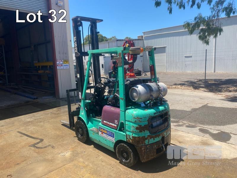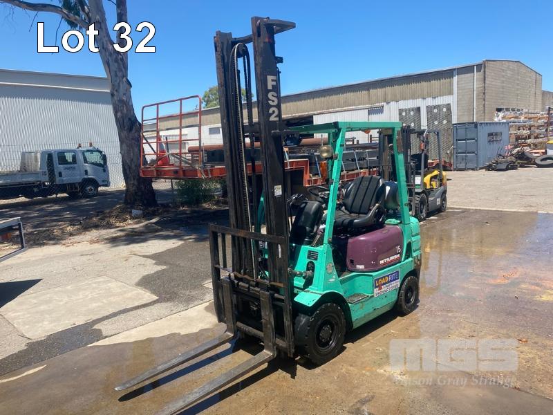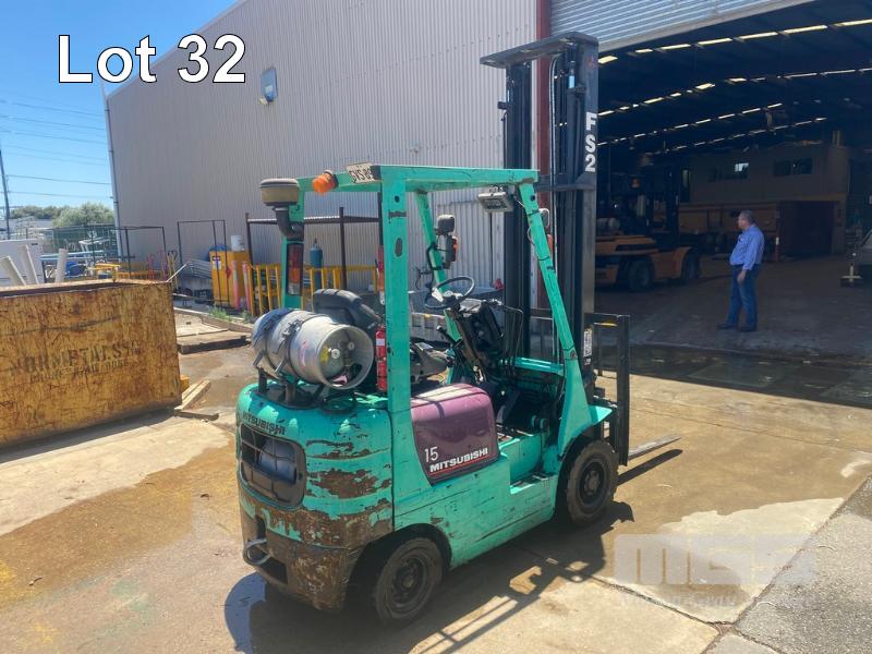 MITSUBISHI FORKLIFT MOD: FG15 S/NO: F25B, 70931 REG: GVS-890 HOURS: 8257 SHOWING SOLID TYRE, LPG 4,000mm 2 STAGE MAST 1,330kg MAX LIFT